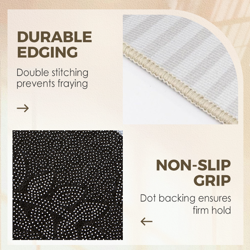 LIUKUMATON PISTEKUVIO: Pistekuvioisella liukumattomalla taustalla varustetut matot tarttuvat tukevasti lattiapintoihin, mikä lisää turvallisuutta ja estää liukastumisen tai liikkumisen jokapäiväisten kotitöiden aikana.