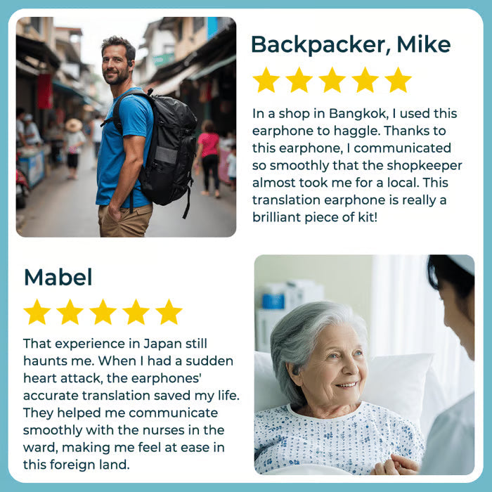 Kuulokkeidemme avulla voit helposti kÀÀntÀÀ ja kommunikoida muiden kanssa reaaliajassa antamalla vain yhden kuulokkeen kumppanillesi, joka kÀÀntÀÀ  keskustelun teidÀn vÀlillÀnne.