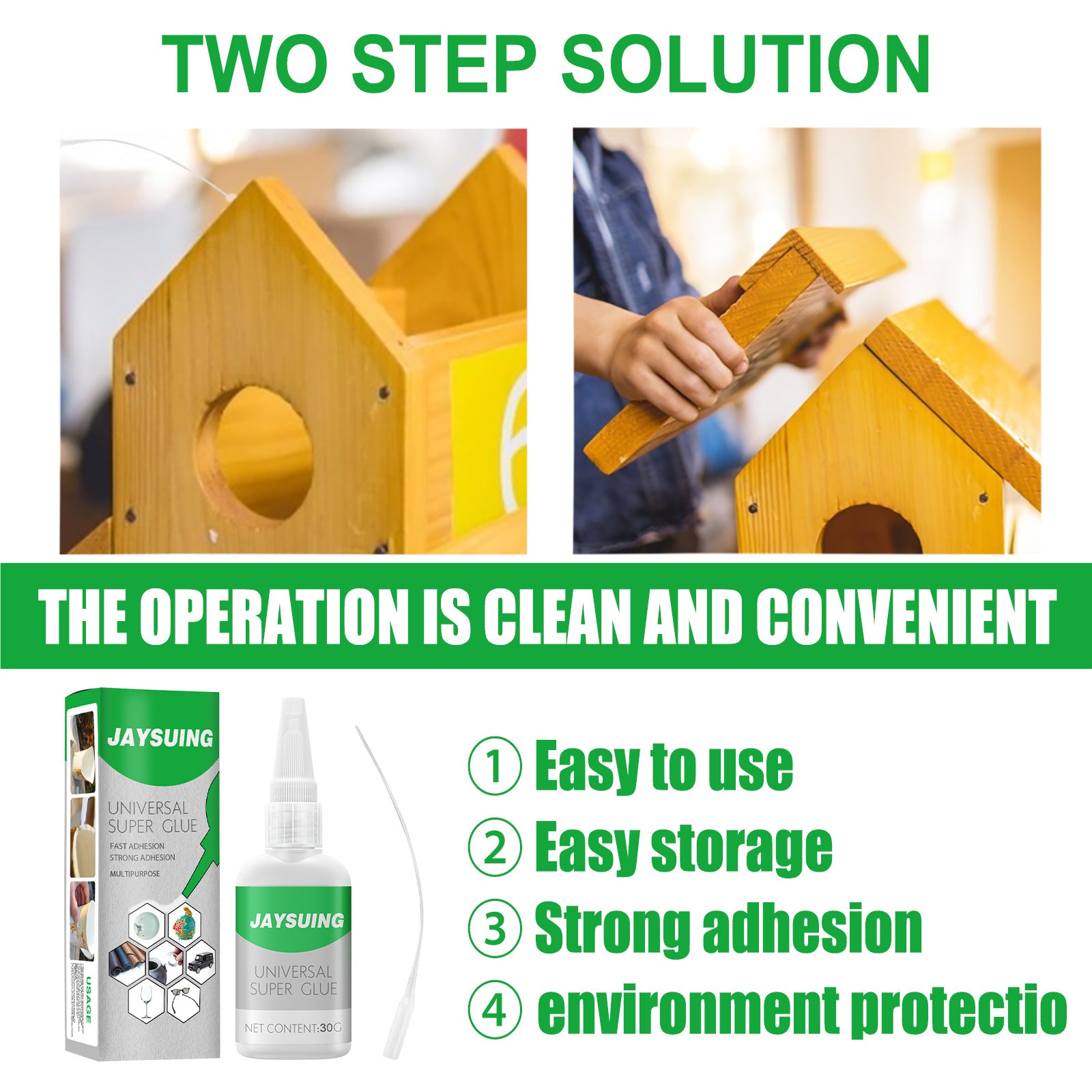 Rasvainen liima korjaa tuotteet hetkessä vahvaan sidoskohtaan.