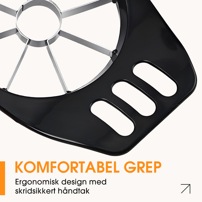 ERGONOMINEN MUOTOILU – Liukumaton ja mukava kahva vähentää käsien rasitusta. Ergonominen muotoilu tekee siitä sopivan pidempäänkin käyttöön ilman epämukavuutta. Olipa kyse nopeasta jälkiruoan valmistuksesta tai useiden hedelmien viipaloinnista juhlia varten, kahva tarjoaa vakaan otteen ja turvallisen käytön.